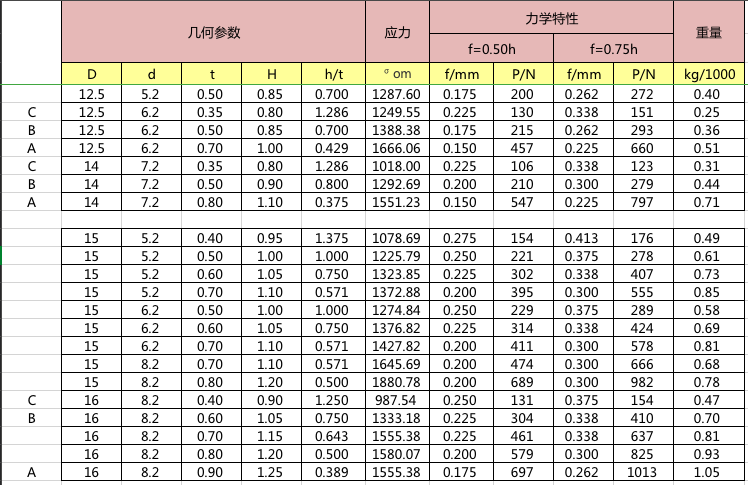 碟簧參數(shù)表--揚(yáng)州邵星彈簧制造有限公司